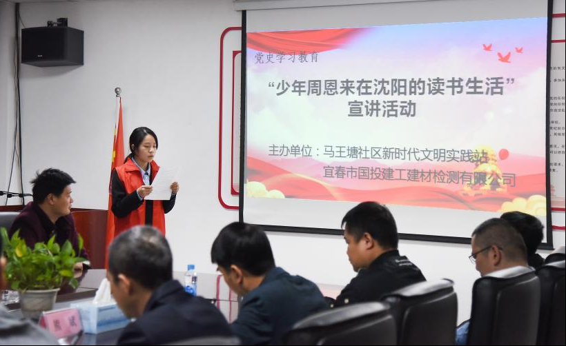 為落實(shí)新時(shí)代黨建工作總要求,構(gòu)建“以共建促黨建、以共建促合作、以共建促發(fā)展”的黨建工作新格局,推動黨史學(xué)習(xí)教育走深、走心、走實(shí),4月25日上午,金園街道馬王塘社區(qū)黨支部與宜春市國投建工建材檢測有限公司黨支部聯(lián)合開展黨史學(xué)習(xí)教育宣講活動。馬王塘社區(qū)黨支部書記周萍、檢測中心黨支部書記鄒仁發(fā)及支部黨員共計(jì)36人參加活動。
