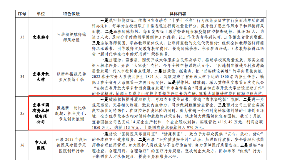 7月9日,《宜春市抓落實(shí)活動(dòng)年“三拼三促”工作簡(jiǎn)報(bào)》(第46期)對(duì)“三拼三促”工作進(jìn)行半年回顧,對(duì)市直單位“三拼三促”抓落實(shí)活動(dòng)特色亮點(diǎn)情況進(jìn)行通報(bào)。我公司作為全市唯一一家市屬國(guó)有企業(yè)順利入選半年優(yōu)秀案例榜單。