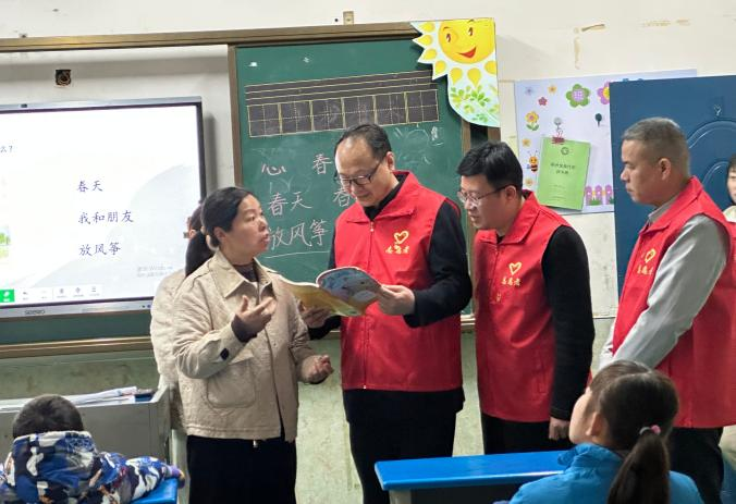 設計支部全體黨員干部在學校副校長歐陽玉梅的陪同下參觀了校園,并走進教室親切的和孩子們打招呼,詢問同學們在校的學習生活狀況。