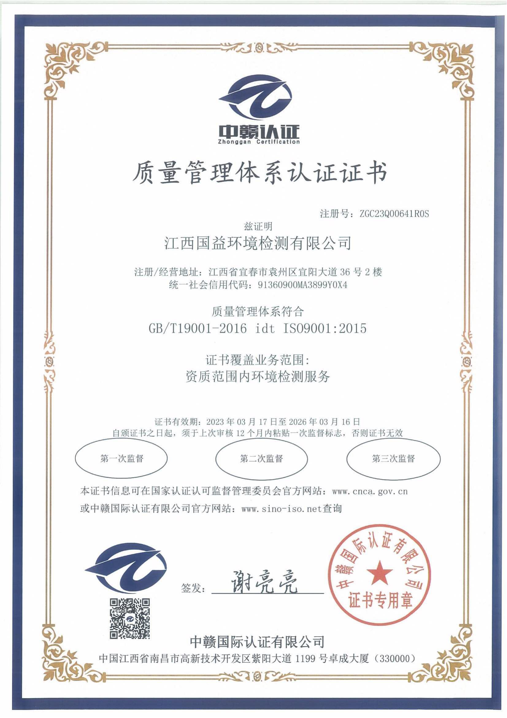 質量管理體系認證證書