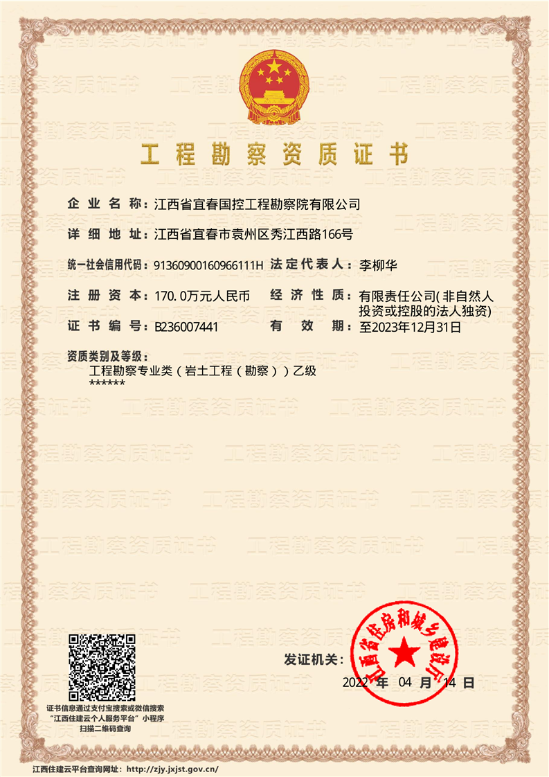 首頁(yè) / 專題專欄 / 企業(yè)資質(zhì) / 江西省宜春國(guó)控工程勘察院有限公司