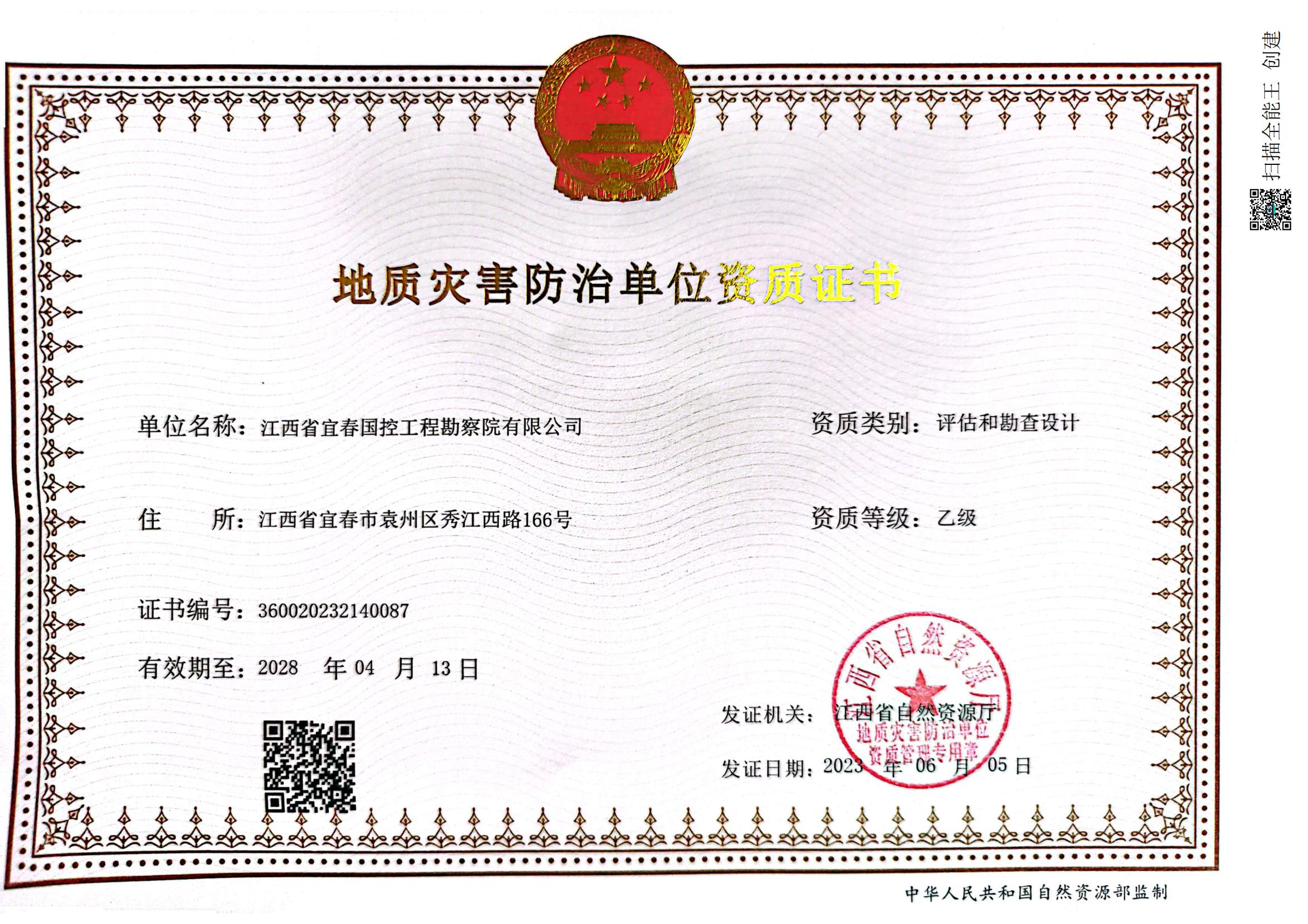 首頁 / 專題專欄 / 企業(yè)資質(zhì) / 江西省宜春國控工程勘察院有限公司