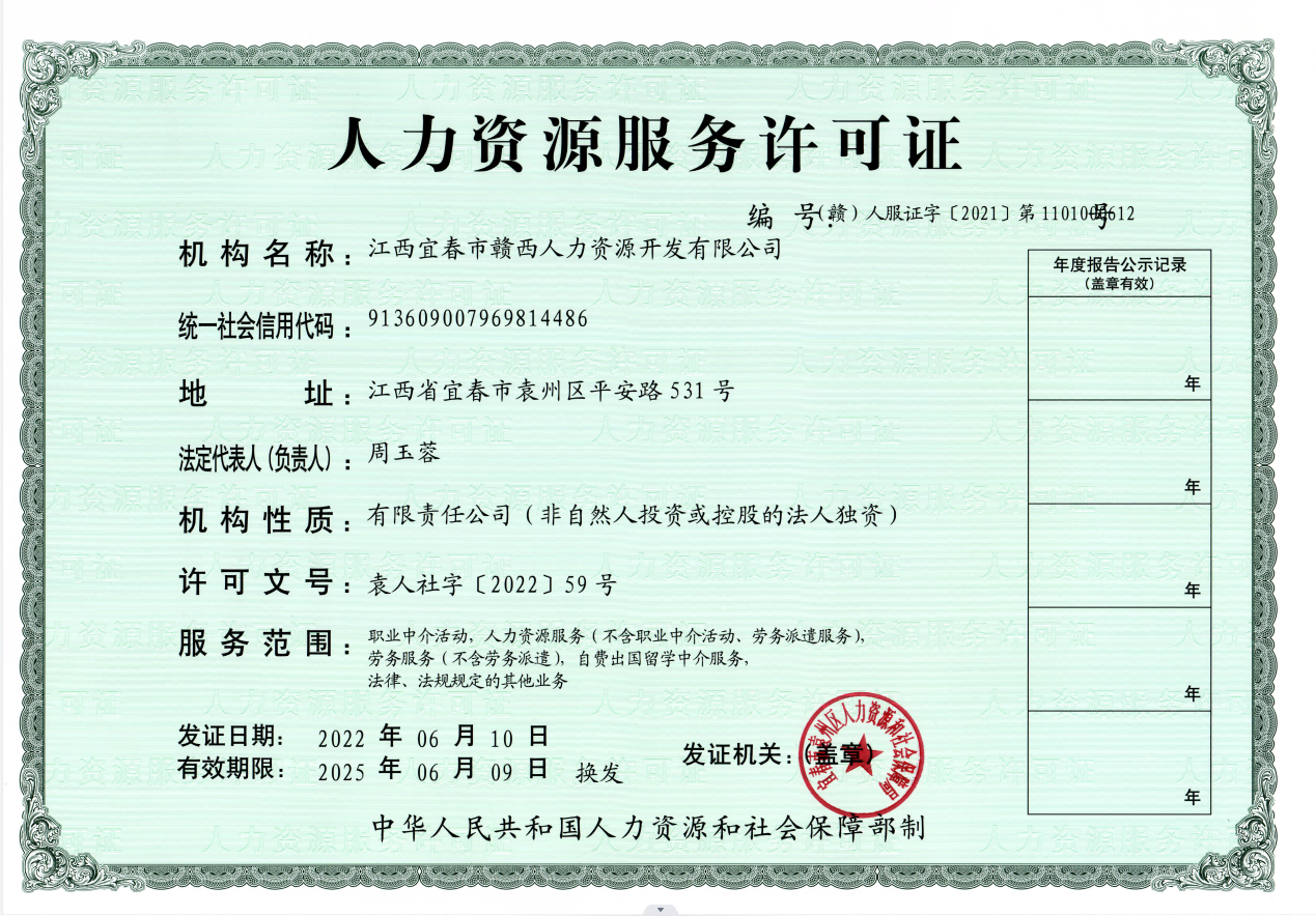 首頁 / 專題專欄 / 企業(yè)資質(zhì) / 江西宜春市贛西人力資源開發(fā)有限公司