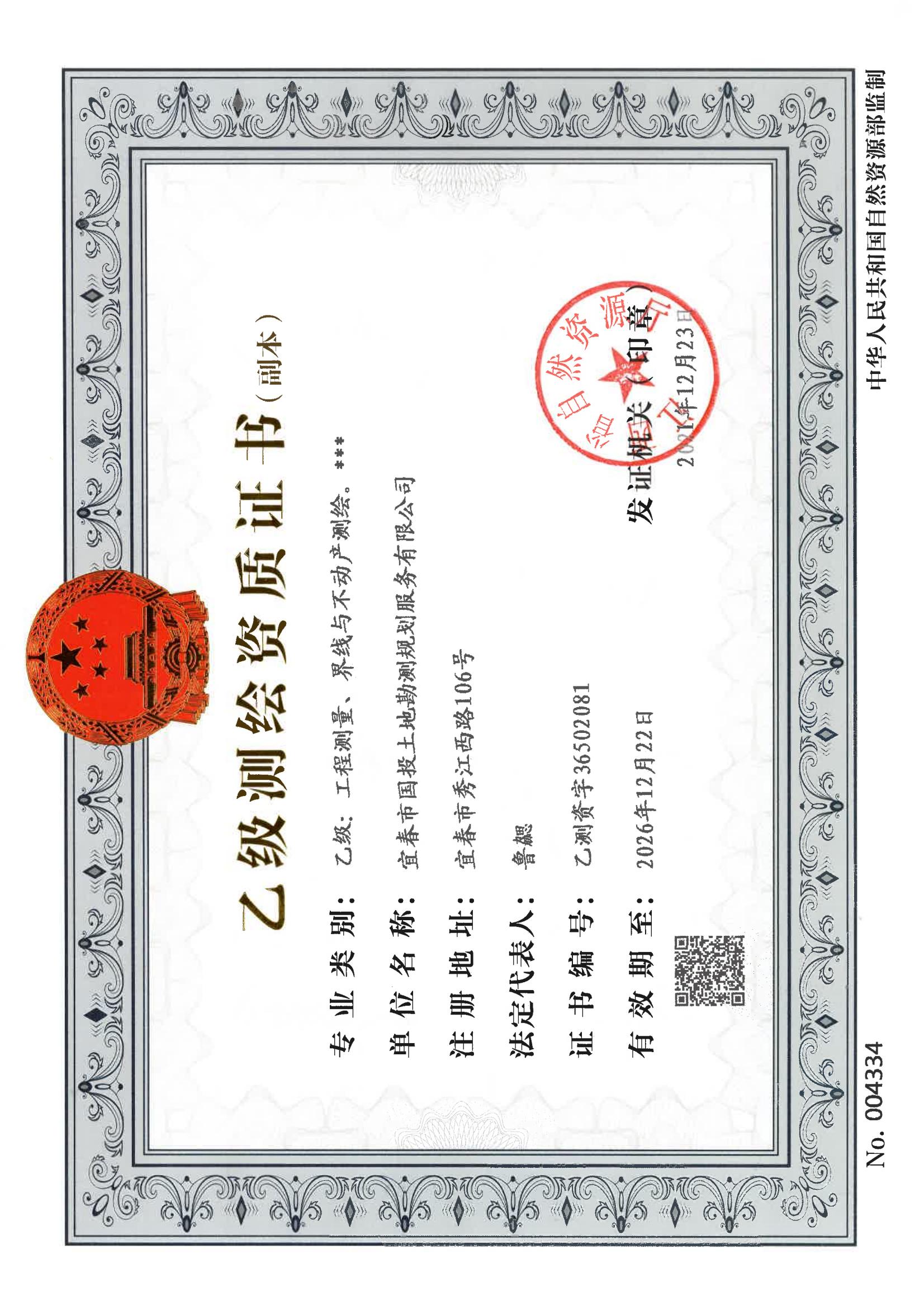 乙級測繪資質(zhì)證書